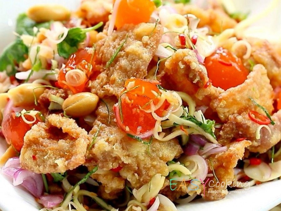 สามชั้นทอดยำตะไคร้ไข่เค็ม