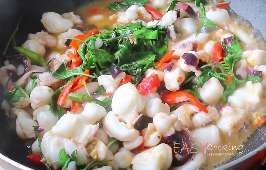 1. ชอบผัดแบบแห้งๆ ควรลวกปลาหมึกให้สุกก่อนนำมาผัด