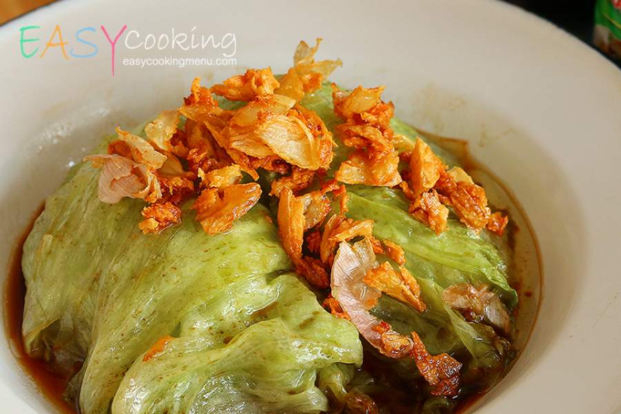 ผักกาดแก้วอบซีอิ๊ว Steamed iceberg lettuce with soysauce ได้เห็นเมนูนี้ครั้งแรก ที่กลุ่มทำอาหาร ครัวในบ้านอาหารทำเอง ผู้ที่นำมาเผยแพร่ก็คือ พี่ Swin แห่ง pantip ที่มีเอกลักษณ์เฉพาะตัวมากในการโพสทุกครั้ง ต้องมีน้ำยอดข้าวเสมอ 55 อ้อเองได้รู้จักเมนูหมูฮ้อง หมูค้อง หมูต้มซีอิ๊ว ก็เพราะบล็อคของพี่ swin นี่แหล่ะค่ะ ยังนึกขอบคุณจนถึงทุกวันนี้ ที่บ้านชอบกันมาก ใครสนใจเมนู หมูต้มซีอิ๊วแวะไปดูได้ที่นี่ค่ะ หมูต้มซีอิ๊ว