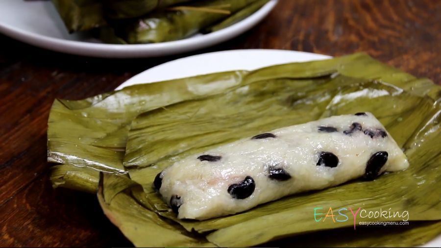 แช่ถั่วดำในน้ำเปล่าอย่างน้อย 4 ชั่วโมงและแช่ข้าวเหนียวในน้ำเปล่า 1 ชั่วโมง แช่ตอกไม้ไผ่(สำหรับมัดข้าวเหนียว) ข้ามคืน