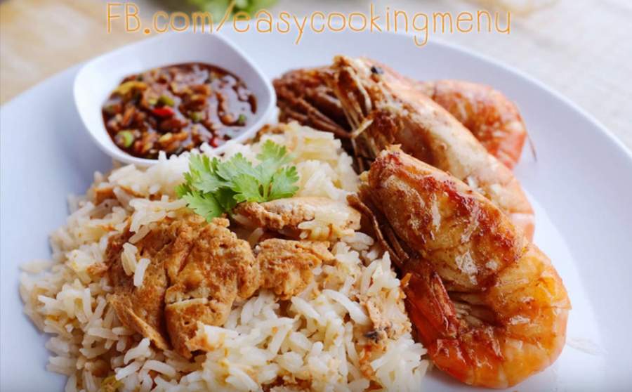 3.ระหว่างรอข้าวสุก อบหรือกริลกุ้งให้สุกหอม สำหรับทานคู่กับข้าวมันกุ้ง