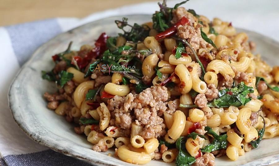 มักกะโรนีขี้เมากะเพราเผ็ด