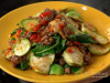 ตั้งกระทะใส่น้ำมันเล็กน้อย นำเขื้อลงไปกริลจนสุก(สุกมากสุกน้อยตามชอบ) ยกขึ้นหั่นเป็นชิ้นๆพอดีคำ